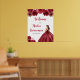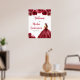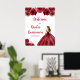This Quinceanera welcome sign features a beautiful princess in a burgundy red ball gown with floral arrangements. This is perfect for a Quinceanera birthday party.