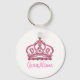 Pink girly princess keychains with a princess crown, printed pink jewels bling and monogram space you can customise with any name or initials. Designed for women or girls who love the colour pink, royal watchers, or collect pink things. Perfect pink girly stuff for teenage girls, party favours, or just a fun way to carry your hose keys or car keys or celebrate British royal monarchy.