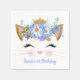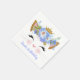 Cute baby girl's first birthday party paper napkins, with graphics of a kitty's face with pink heart shaped nose, big eye lashes, gold glitter looking ears and crown. Blue flowers decorate the top of the kitty's head. Personalise the cornflower blue text to suit your event needs. Matching products are available.