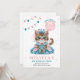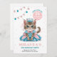 Charming watercolor kitten princess in a sparkling blue dress and crown, surrounded by soft pastel lights. Perfect design for a magical little girl’s birthday celebration.