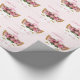 Sweet girl's wrapping paper done in pink and white stripes, with graphics of a cute kitty face complete with golden eye lashes and a pink crown and pink flowers. Personalise the name for birthdays and more.