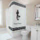 Beautiful Black ocean Princess mermaid silhouette with diamond gemstones on black and silver grey wavy background Shower Curtain. Text can be personalised.