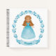 A cute dark hair, princess in a blue sparkly dress decorates this notebook Back of notebook has a dainty blue floral pattern. Personalise it with your name. Makes a cute birthday party favour or gift. Designed for you by Blackberry Boulevard.