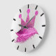 Princess Of Lashes Crown Pink Gray Black Glitter Large Clock