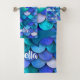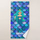 Princess on blue and purple mermaid scale pattern bath towel set