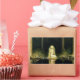 Princess Tuvstarr with long, blonde, wavy hair sitting in the forest, looking down at her reflection in the dark waters. Beautiful watercolor by John Bauer. Illustration for the Swedish folktale "The story of Skutt the moose and little Princess Tuvstarr", written by Helge Kjellin in 1913.