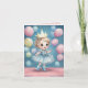 A charming digital watercolor illustration of a happy little girl with curly blonde hair, dressed in a glittery pale blue party dress and matching boots. She wears an oversized golden crown and holds pastel balloons in soft shades of pink, yellow, and blue. The backdrop features a dreamy deep blue sky sprinkled with tiny sparkles and floating balloons, while the girl stands on a rosy pink floor. The scene has a fairytale-like quality, full of warmth, joy, and celebration.