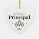 First Christmas as a school principal heart ornament for a new job. Elegant porcelain ceramic holiday ornaments in white with black lettering. Featuring Christmas trees and stars.