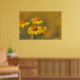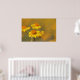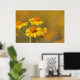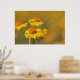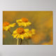A cheerful photo print of a bright yellow brittlebush flower cluster (Encelia farinosa). The flowers are concentrated in the left half of the image and the right half is a soft focus blur of the field of flowers behind them. The main colours in the photograph are yellow, orange and yellow-green. Taken at the Lost Dutchman State Park near Apache Junction in Arizona during March of 2008. Horizontal format.