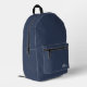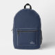 A classic navy blue backpack, perfect for daily use, university, or travel. The design is clean and elegant, personalized with a custom name, such as Alex, written in a stylish white script font on the front pocket. The dark color makes it versatile, while the personalized touch adds sophistication. It features a main compartment, a front zippered pocket, and mesh side pockets.