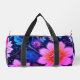 Presenting the "Floral Fantasy" graphic by ELGN, this vibrant design showcases a lively array of illustrated flowers in shades of pinkish orange, shades of blue, contrasted against a bold black backdrop. The classic style captures a floral essence, combining flowers elements with an artistic touch of an eye-catching pattern witch radiates a joyful and enchanting atmosphere.