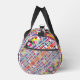 I actually had been searching other sites for a duffle gym bag and I couldn't find any. This one is just what I was looking for with all the features. The inside zip pocket, the outside mesh pocket and LOTS of room inside. Love the printing. Really like how the floral print turned out.