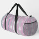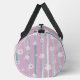 Travel in rustic charm with the Gingham Orchard Print Cut Sew Duffel Bag. This cozy and whimsical design features vertical brushstroke stripes in soft shades of pink, gray, and blue, layered with white gingham silhouettes of apples and flowers. The combination of painterly textures and classic gingham patterns creates a nostalgic yet modern feel — perfect for gym sessions, weekend getaways, or gifting.