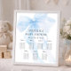 Printable Blue Bow Baby Shower 7 table Seating Chart. Modern and minimalist, the words are overlaid onto the Watercolor soft blue bow.