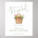 Printable She’s Fresh off the Market Welcome To Bridal Shower. Available digitally and printed. The word Market is in an elegant set script. The rest of the text you can easily personalise. Celebrate the bride-to-be with this charming farmers market-inspired bridal shower design. Featuring a soft and romantic watercolor illustration of a wicker basket filled with fresh produce and flowers, this elegant design blends rustic charm with feminine sophistication. The modern calligraphy script and warm color palette create a whimsical yet timeless aesthetic, perfect for a gathering that feels fresh, natural, and full of love. Ideal for garden parties, farm-to-table events, or market-themed bridal showers, setting the tone for a beautiful celebration.