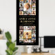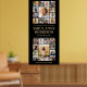 Add an elegant customised touch to college or high school graduation party decorations with a large photo collage vertical welcome poster. The pictures and wording on this downloadable sign template are simple to personalise with the graduate's name, class year, school, and thank you message. (IMAGE PLACEMENT TIP: An easy way to position a photo is to crop it before uploading to the Zazzle website.) The modern black and gold design features chic handwritten script calligraphy with a mortar board cap, stylish classic typography, and 26 square photos of your choice, such as senior pictures or images from the commencement ceremony. Please note that gold is printed colour not metallic foil. This printable graduation poster is an elegant way to welcome friends and family to a special day celebration. Congratulations to the graduate!