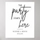 The Party starts here modern wedding welcome sign features calligraphy signature font and the Bride and Groom's name along with wedding date. Click "design tool" button to customise further. Printable wedding signs are the perfect way to print your wedding signs at home. Simply download the size you need and print at your local office supply store or at home.