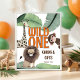 Printable Wild One Safari 1st Birthday Cards and Gifts Sign. Available digitally and printed. Sweet safari animals and forest greenery for your little one's first birthday celebration! Easily personalise text to your own details.