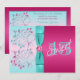 PRINTED BOW Pink, Aqua Floral Quinceanera Invite