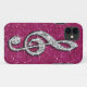 Elegant, glamourous girly case. Beautiful, dazzling trendy printed image silver and diamonds bling jewels musical note on a chic hot pink sparkly glitter printed image background. A cute classy, fashionable, stylish, pretty gift for her or any musical lover.