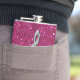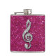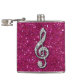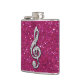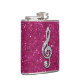 Elegant, glamourous girly flask. Beautiful, dazzling trendy printed image silver and diamonds bling jewels musical note on a chic hot pink sparkly glitter printed image background. A cute, classy, fashionable, stylish, pretty gift for her or any music lover.
