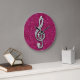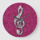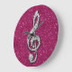 Elegant, glamourous girly clock. Beautiful, dazzling trendy printed image silver and diamonds bling jewels musical note on a chic hot pink sparkly glitter printed image background. A cute, classy, fashionable, stylish, pretty gift for her or any music lover.
