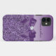 Elegant personalised girly purple case with a beautiful printed purple sequins pattern, a cute printed purple ribbon and pretty printed diamond bling jewel. Personalise it with your own name. A trendy, glamourous gift for her - women and girls will love this fashionable purple case.