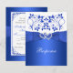 This romantic and elegant cobalt and royal blue and white floral wedding rsvp card may has a PRINTED ribbon and bow with a pair of PRINTED diamond jewel and FAUX glitter (simulated) joined hearts on it, along with an ornate scrolled border on the back that matches the wedding invitations shown below. ***PLEASE NOTE there are no raised elements on this invitation. Everything is printed flat. ***PLEASE NOTE that if you change the fonts or size of the fonts, it may alter how your invitation prints. It will print the way you see it on your monitor, so if you have alignment issues, or sizing problems, please contact me for help. I will not see your invitation once you order it, and Zazzle will NOT edit anything (typos, alignment, etc.). If you require assistance or would like any other matching items, please email your request to niteowlstudio@gmail.com.