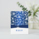 This navy blue and white snow flakes reply card has a PRINTED RIBBON with a diamond jewels brooch on it that matches the wedding invitation and other items shown below. Email niteowlstudio@gmail.com with any requests for matching items or colour changes etc.