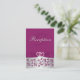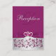 This elegant and romantic monogrammed dark magenta purple and silver grey floral reception enclosure card has a PRINTED ribbon and bow, with a pair of PRINTED diamond jewels and FAUX simulated glitter joined hearts brooch on it that matches the wedding invitations shown below. You can also customise it to be a directions card, an accommodations card, a gift registry card, a wedding website card, a wishing well or charity card, or a general information card by changing the text accordingly. If there are any other matching items you require, please email your request to niteowlstudio@gmail.com.