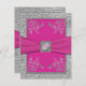 PRINTED RIBBON Raspberry Pink, Pewter RSVP Card