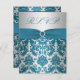 PRINTED RIBBON Silver, Teal Damask Reply Card