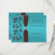This turquoise blue and chocolate brown floral reply card has a PRINTED ON ribbon and bow with a gemstone and diamond jewel brooch on it that matches the wedding invitation shown below. There is also an alternate RSVP card with a turquoise ribbon and flowers if you prefer an exact match. The text is all customisable. The paper is also customisable. If you require any other items in this design, such as Save the Date cards, wedding programs, photo cards, table number cards, reception cards, wedding album etc., please email your request to niteowlstudio@gmail.com. Existing matching items are shown below.