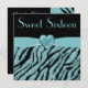 Printed Teal Heart & Zebra Glitter Sweet 16 Invitation