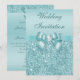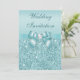 Printed Teal Sequins Diamonds Faux Bow Wedding Invitation
