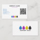 This white business card with Colourful CMYK ink drops and QR Code is fitting for a printing services company, but also for a personal brand or graphic design activities!