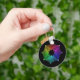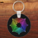 A multi-coloured abstract snowflake with overlapping segments and a glossy look, with thin white highlights.
