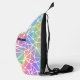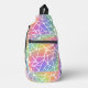 Thin webbing in plain white on a bright rainbow gradient negative space.