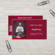 A burgundy coloured background. Personalise and add your photo, title, business name/name and text, contact information on front. White text.
