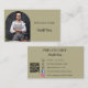 A sage green coloured background. Personalise and add your title, business name/name and text on front. Black text. An arch shaped photo frame.