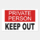 Private Person Keep Out Rectangular Sticker