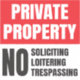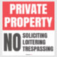 Private Property Warning Sticker Sign. No Soliciting. No Loitering. No Trespassing.