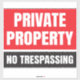 Private Property Warning Sign. No Trespassing.