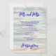 Announce a marriage on water themed paper, with Mr. and Mrs. at the top and surname at the bottom. Customise the centre text template with wording for a reception party to celebrate the newlyweds. Lake or calm sea water paper with dark purple text.