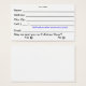Prize Drawing Entry Cards (business card size) Name, Address, Phone, Email (and asking for permission to add to electronic newsletter)