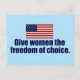Give women the freedom of choice in America. It's our civil right. Every woman deserves the right to choose. Pro choice postcards with the American flag.