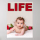 This is a beautiful Pro-life image of a baby girl with red roses with the word "LIFE".
