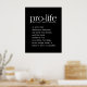 A pro-life's definition and perspective as it pertains to my body my choice, and the choice you can make, Life. White font on black background poster.