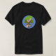 I give wanted to give this a 4 instead of a 5 because these Basic DARK T0shirts run unexpectedly SLIM or Narrow. Which is great if you do not have a potbelly, but I have a paunch. It isn't the shirt's fault that I've got a beer belly. The design and shirt itself is a quality cotton shirt. The color is more of a deep purple, but still a very pretty color. The Basic DARK T-shirts run a bit SLIMMER than the Basic Ts. The neck is a fraction narrower (or seems to be narrower) also. I'm a paunchy middle-aged woman and my neck is 12 inches (31cm) thick and the neckline fell about the same as in the photo of the man, and I had the desire to tug it a bit. So if you're a thick necked man or like loose shirts, be aware these are slimmer shirts. Once I get rid of my lockdown paunch it'll look great. The shirt washed well in cold water with no apparent bleeding. We don't have a dryer, so it hung dry. Did not shrink. Love the colors and the design. The design looks smaller on my shirt than it does on the model on-line. But still, it looks good on the shirt. The printing looks as it does on the model, just the size seems fractionally smaller. Washed garment in cold water, hung dry and design appeared unaffected.