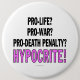 Pro-life? Pro-war? Pro-death penalty? Hypocrite! 6 Cm Round Badge